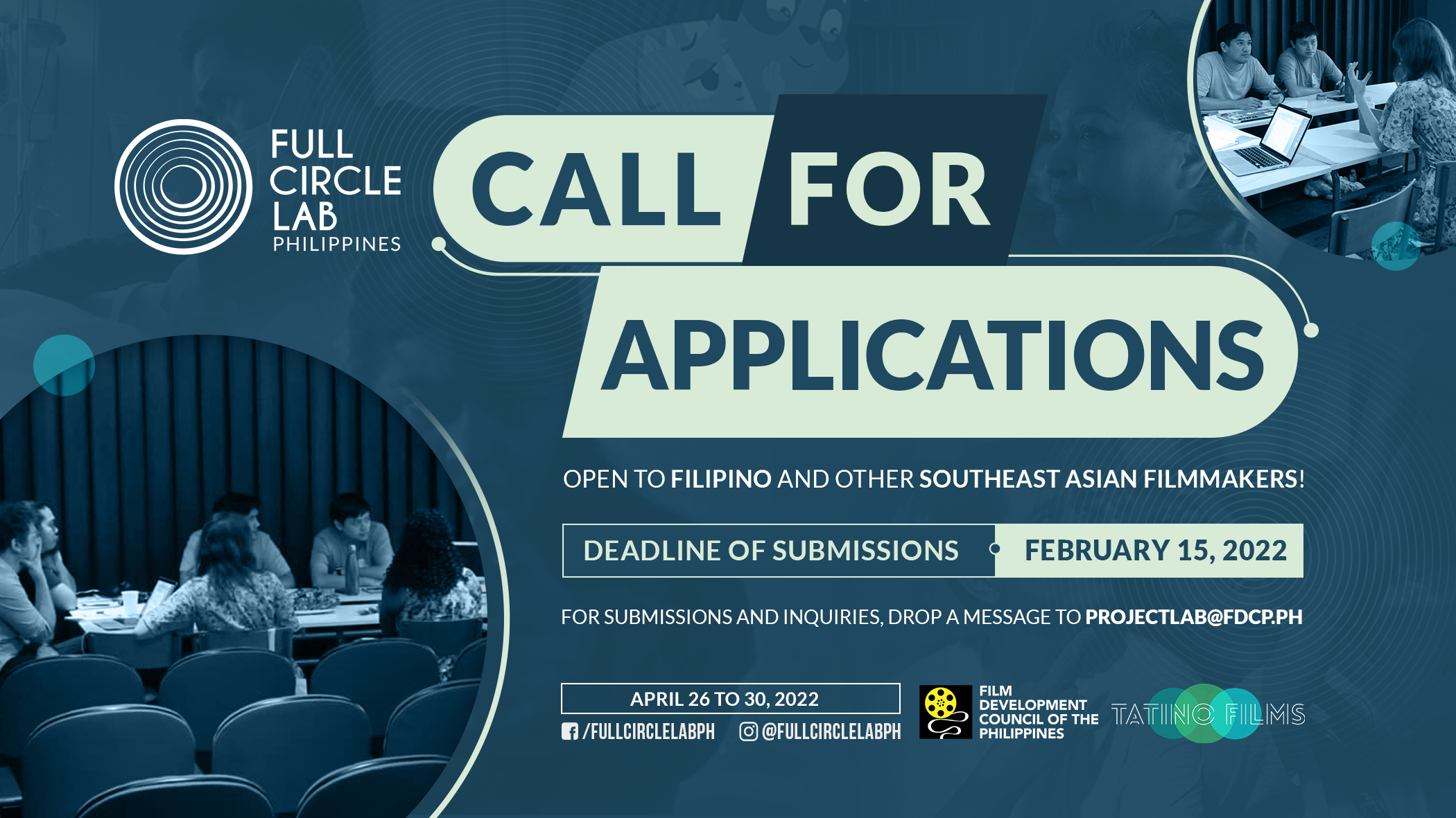 MANILA, PHILIPPINES, JANUARY 10, 2021 —  The Full Circle Lab Philippines (FCL PH), a joint capacity-building program for Filipino and other Southeast Asian filmmakers of the Film Development Council of the Philippines (FDCP) and European production outfit Tatino Films, has opened the call for applications for this year’s edition. The 2022 edition will consist of four (4) labs that will directly benefit fifteen (15) projects and eleven (11) talents, with no less than ten (10) international mentors and industry advisors involved. The Story Editor’s Lab, a new section, will also be introduced and will be focusing on story development particularly in the script development stage.