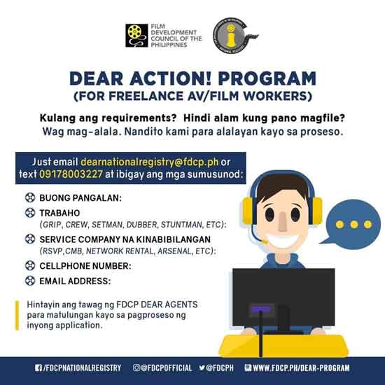 Since the quarantine started, our agency—the Film Development Council of the Philippines (FDCP)—has been a lot busier because of the DEAR (Disaster/Emergency Assistance and Relief) programs that we recently launched. DEAR, as we fondly call it, is the agency’s quick response fund to support our displaced freelance audiovisual workers who were affected by the Covid-19 pandemic.
